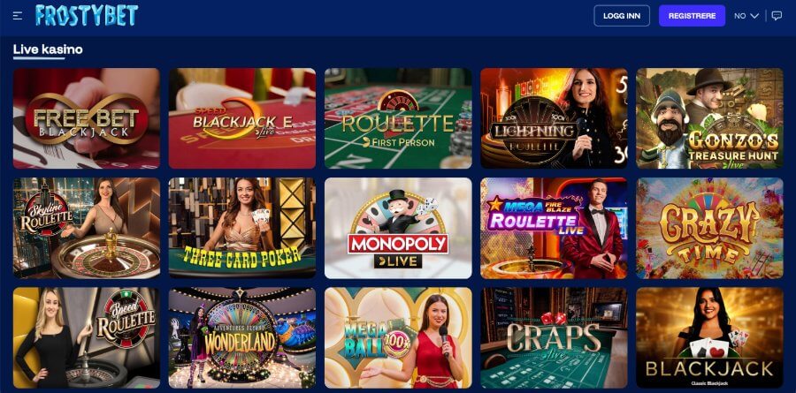 Hos Frostybet kan du velge mellom flere varianter av spill. De tilbyr de fleste kategorier innen casinospill, men mangler en oddsside. Du kan også spille diverse crash games.