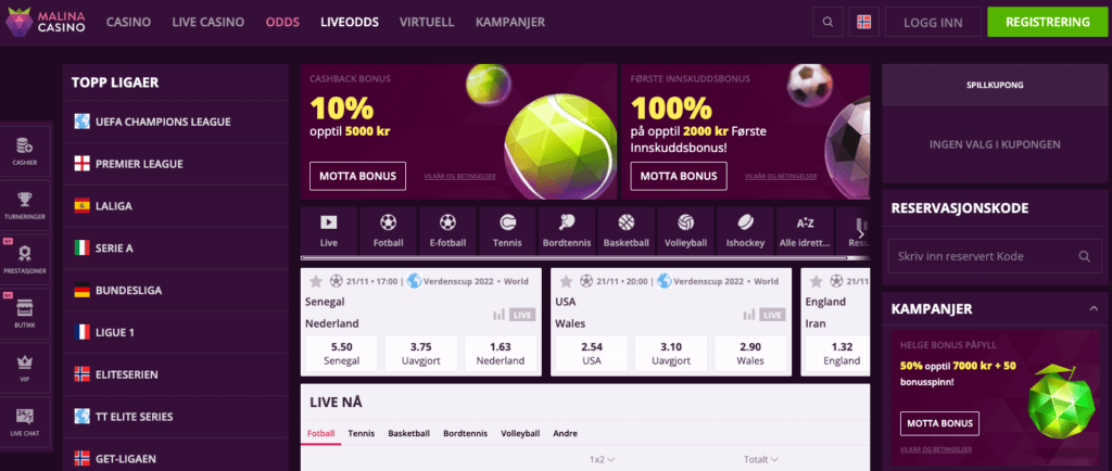 Dersom du er på jakt etter å finne et nytt spennende casino med et variert utvalg av spill, er Malina Casino noe du kan se nærmere på. De tilbyr både casino og oddstipping.