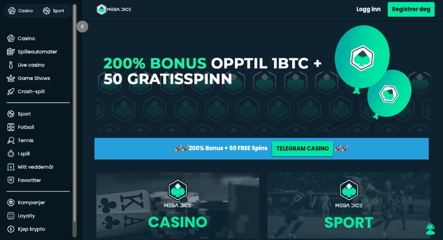 Mega Dice er ene og alene et kryptocasino, men det unike er at du kan velge å knytte spillekontoen mot Telegram-kontoen din. Det gjør at de skiller seg ut fra andre kryptocasinoer på markedet akkurat nå.