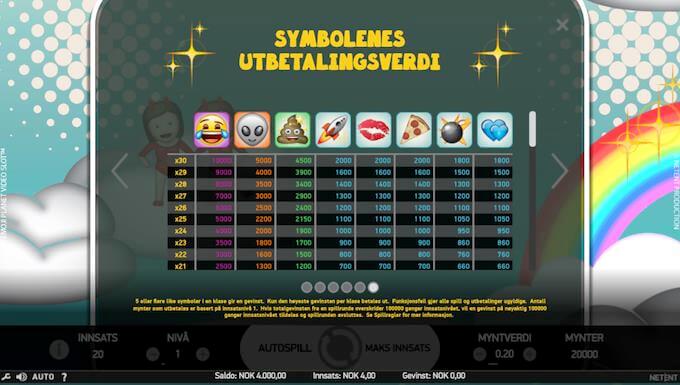 Vi har sett litt nærmere på hvordan Emojiplanet er bygget opp, og når du spiller vil du finne massevis av forskjellige symboler. Her har du alt fra pizzastykker, smilefjes, kyssemunn, rakettsymbol, bombesymbol og flere andre artige tegn. Det er rett og slett mye som skjer når du spiller Emojiplanet.