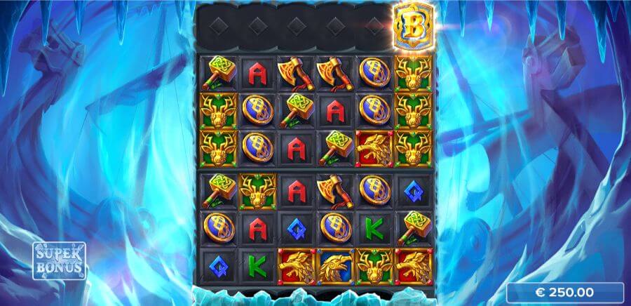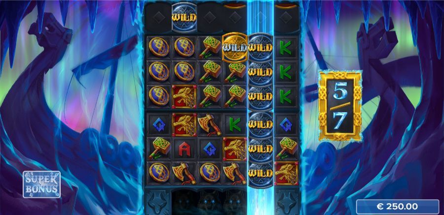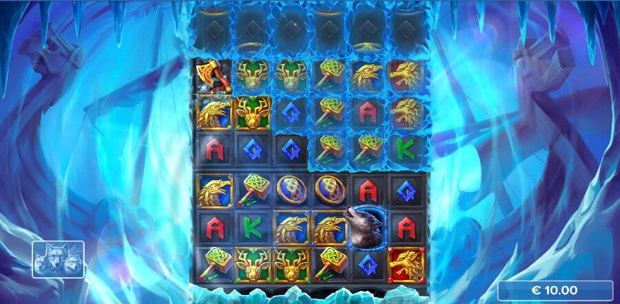 Øverst i spillområdet finner vi Feature Row, en egen rad som inneholder Wild-symboler, multiplikatorer, Bonus-symboler og Golden Wolf-symboler. Ved starten av hver spillrunde er denne raden dekket av is og dermed inaktiv.