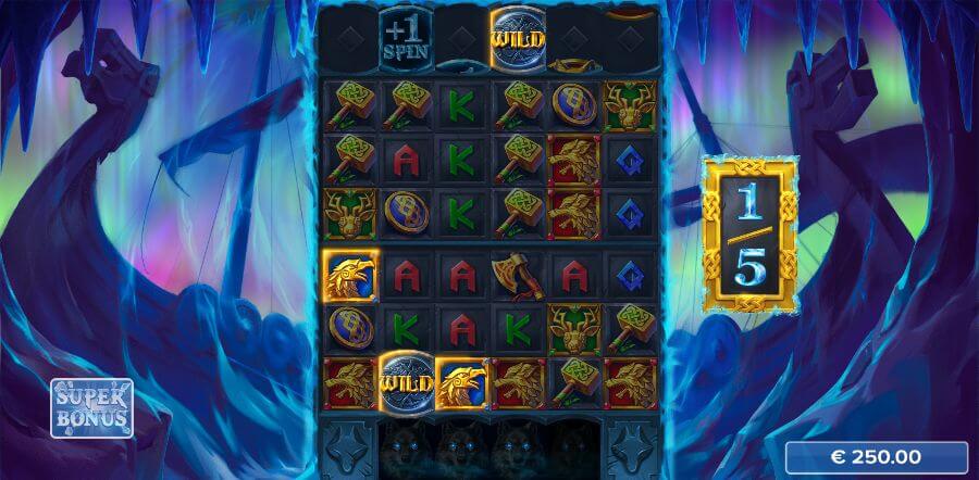 I Bonus-modus kan også +1 Spin-symboler dukke opp i Feature Row. Hvert aktivt symbol gir én ekstra Wolf Spin, noe som kan forlenge bonusrunden betraktelig. Ice Wolf-symboler som kommer fra Wolf Den gir ikke respinn, men bidrar til flere Wild-symboler og høyere multiplikatorer.